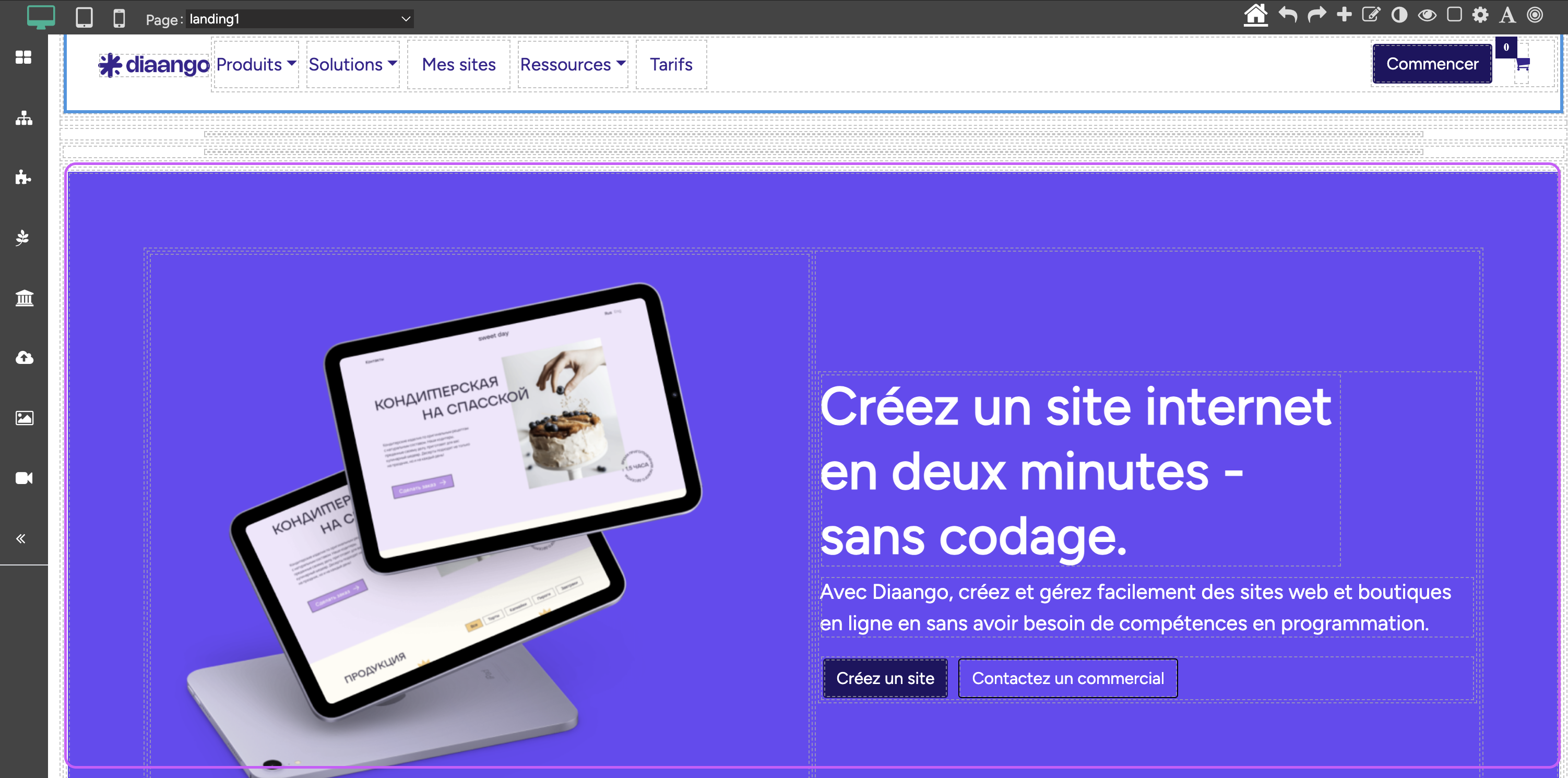 Une section est un composant conteneur utilisée pour structurer vos designs et la mise en page, il permet de regrouper les sous composants dans un bloc compact qui représente un composant personnalisé. Ci-dessous une image d'une section contenant une mise en page.