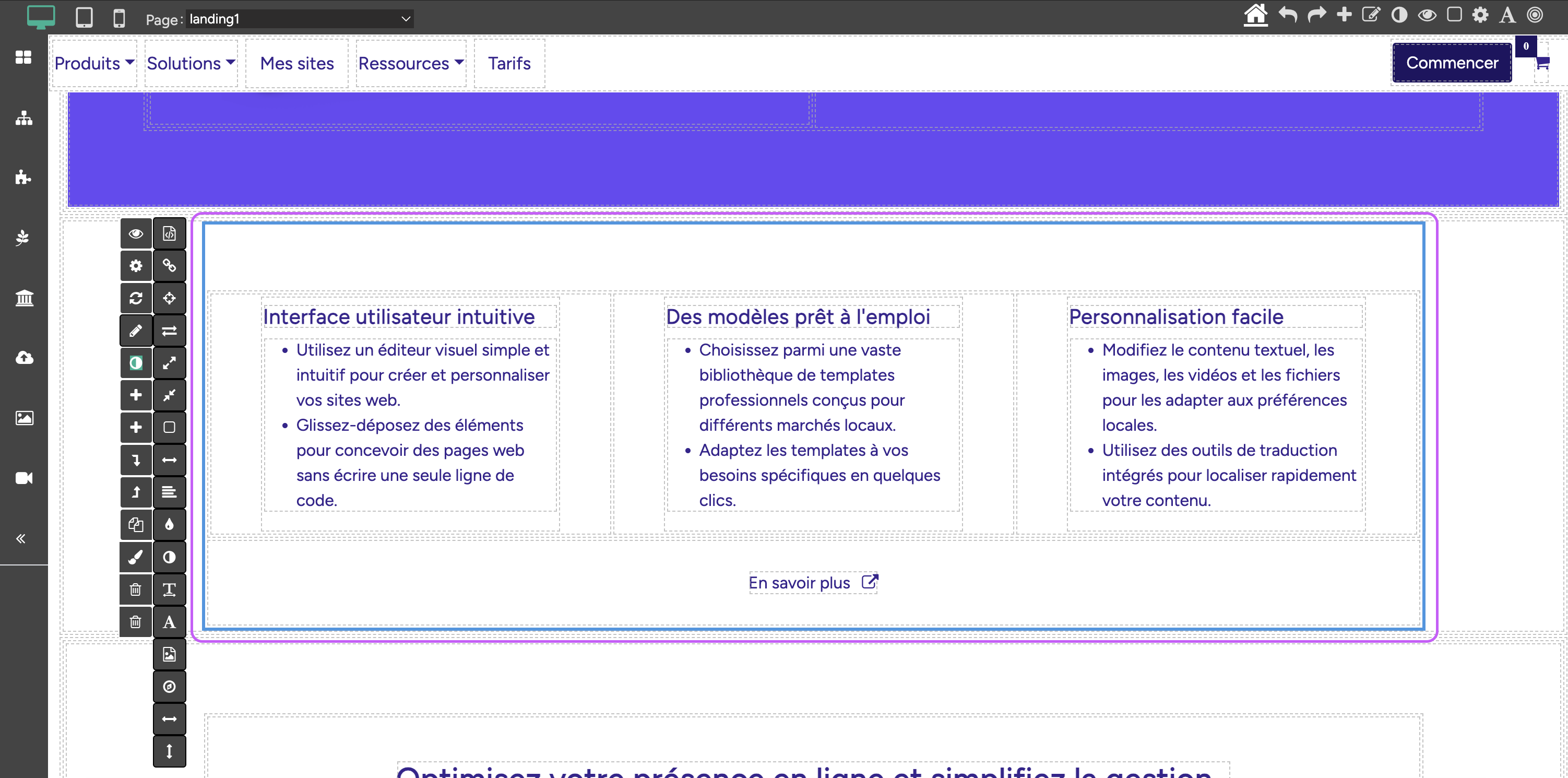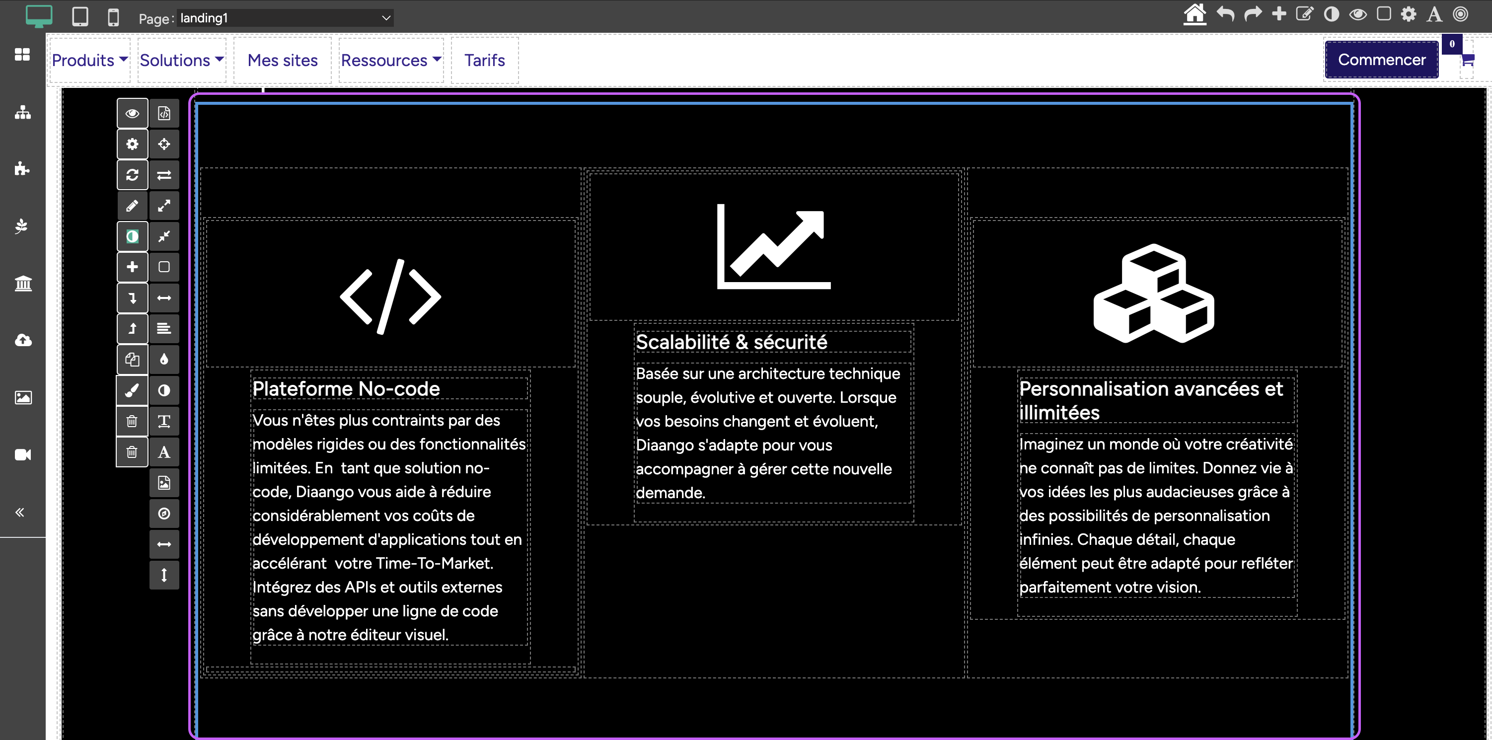 - Les conteneurs sont des composants personnalisés, vous pouvez facilement les réutiliser en le copiant et en le dupliquant vers un autre endroit de votre page ou dans d'autre page.