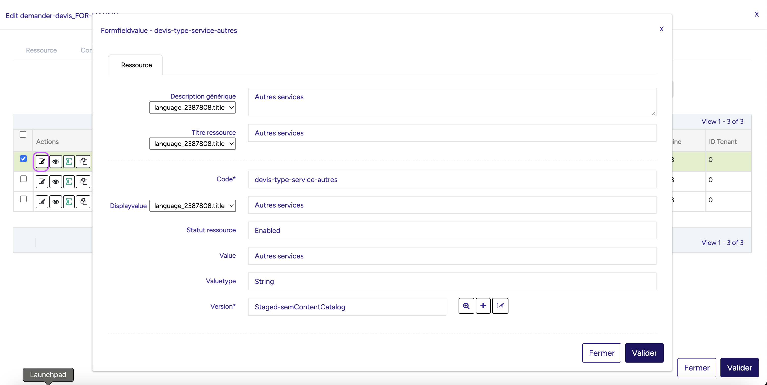 - Cliquez sur le boutons d'édition avancée pour ouvrir le formulaire.