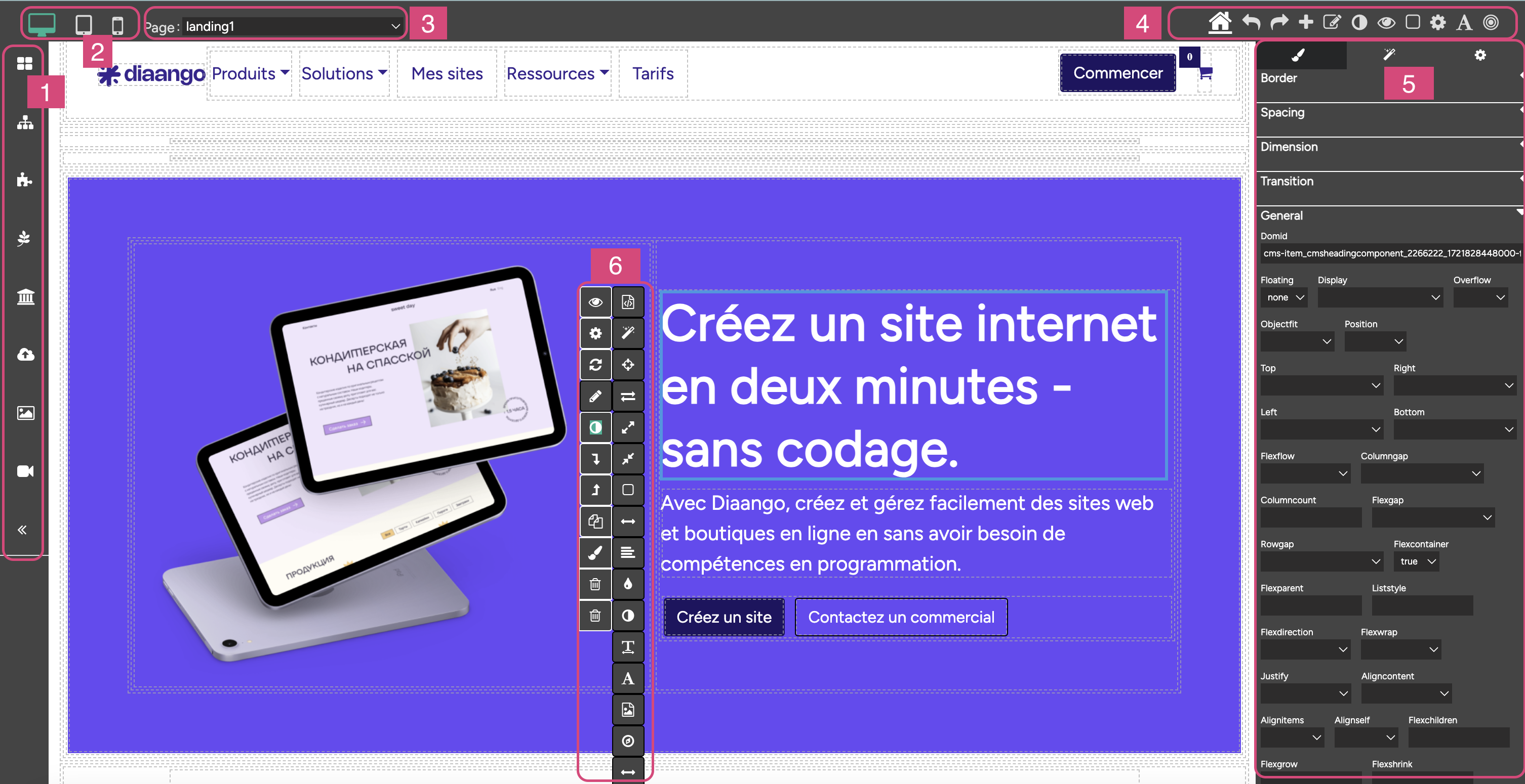 Diaango intègre un éditeur visuel innovant qui permet de créer facilement des contenus et pages web dynamiques. Dans cet article nous allons abordons les aspects essentiels de l'éditeur pour vous permettre de le prendre en main.